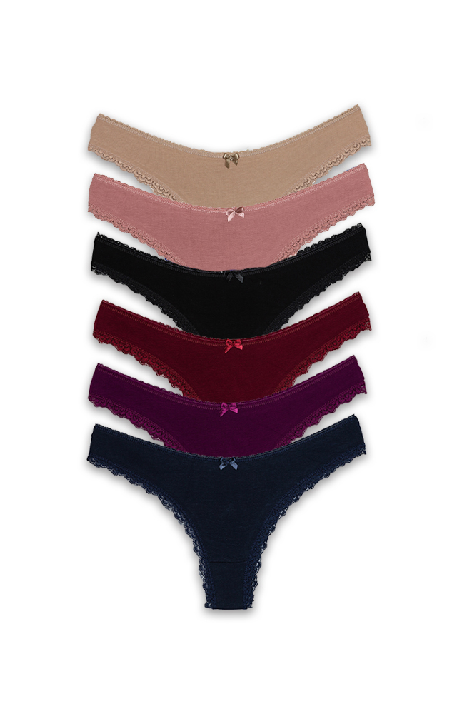 Βαμβακερό brazil κιλοτάκι με δαντελένιες λεπτομέρειες για άνεση και στυλ. Πακέτο 6 τεμαχίων.