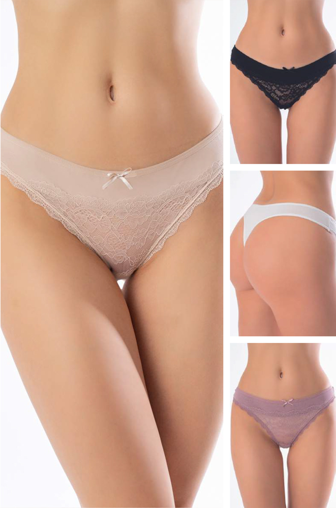 Γυναικείο βαμβακερό string κιλοτάκι με δαντελένιες λεπτομέρειες στην μπροστινή όψη. Πακέτο 4 τεμαχίων. Σύνθεση: 90% Βαμβάκι, 10% Ελαστίνη