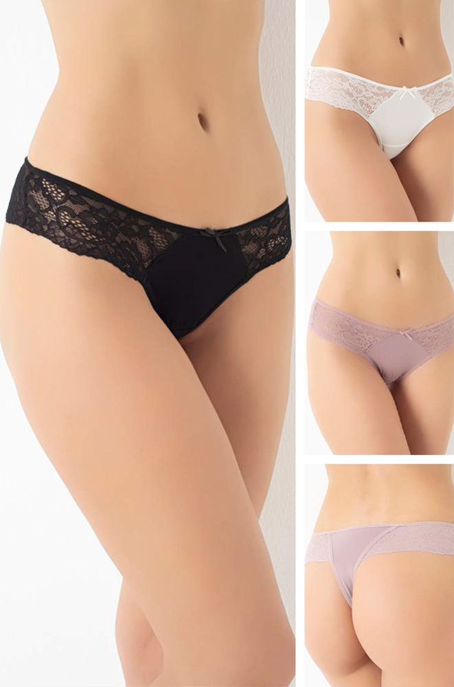 Γυναικείο βαμβακερό string κιλοτάκι με δαντελένιες λεπτομέρειες. Πακέτο 4 τεμαχίων. Σύνθεση: 90% Βαμβάκι, 10% Ελαστίνη