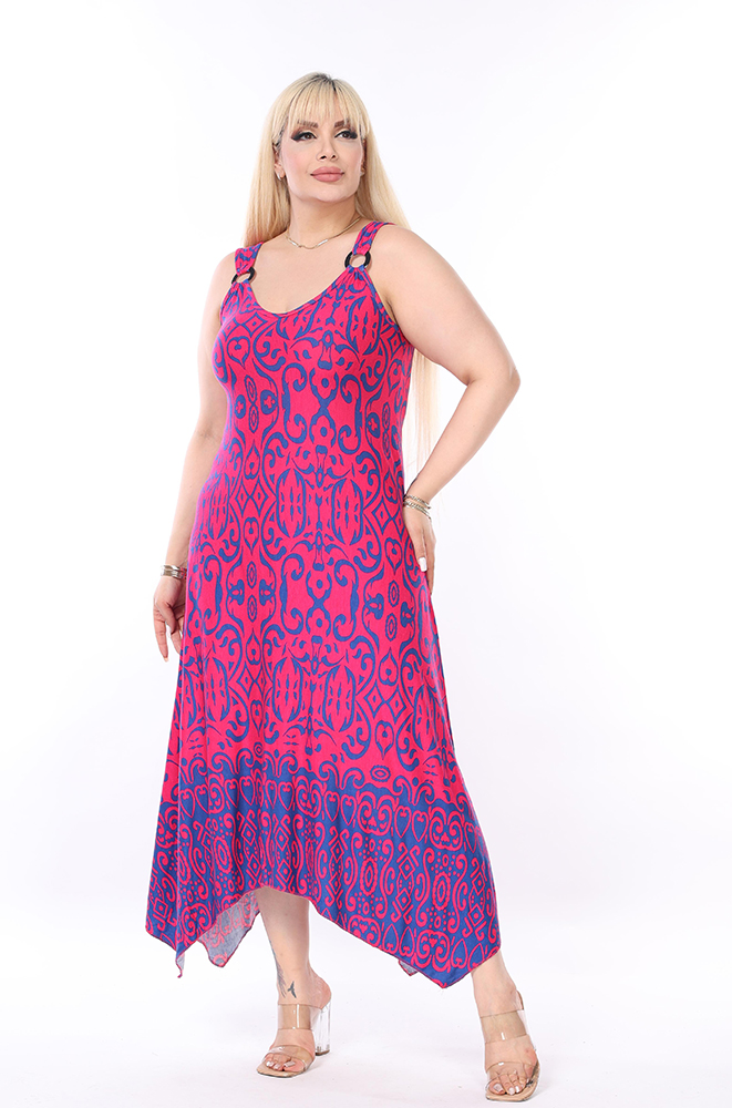 Γυναικείο καλοκαιρινό φόρεμα σε ασύμμετρη γραμμή. Το μαλακό βισκόζ ύφασμα του είναι ιδανικό για όλες τις ώρες και μέρες κάνοντας τις εμφανίσεις σας πιο άνετες και μοναδικές. Διαστάσεις: XL : Στήθος 90cm 2XL : Στήθος 100cm 3XL : Στήθος 115cm 4XL : Στήθος 125cm