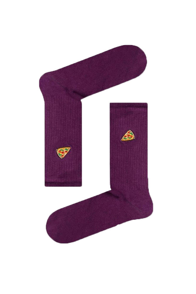 Κάλτσα Unisex με Σχέδιο Κέντημα Purple Pizza