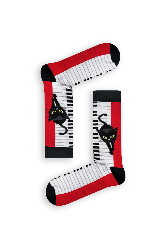 Κάλτσα Unisex με Σχέδιο PIano Cat