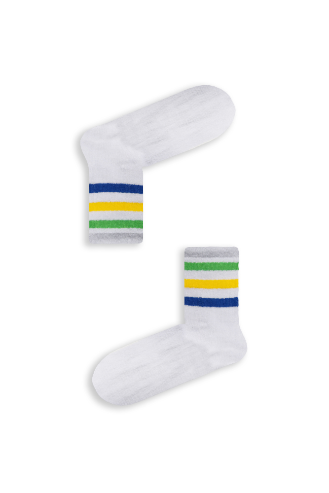 Κάλτσα Unisex με Σχέδιο White With Green Yellow Blue Lines