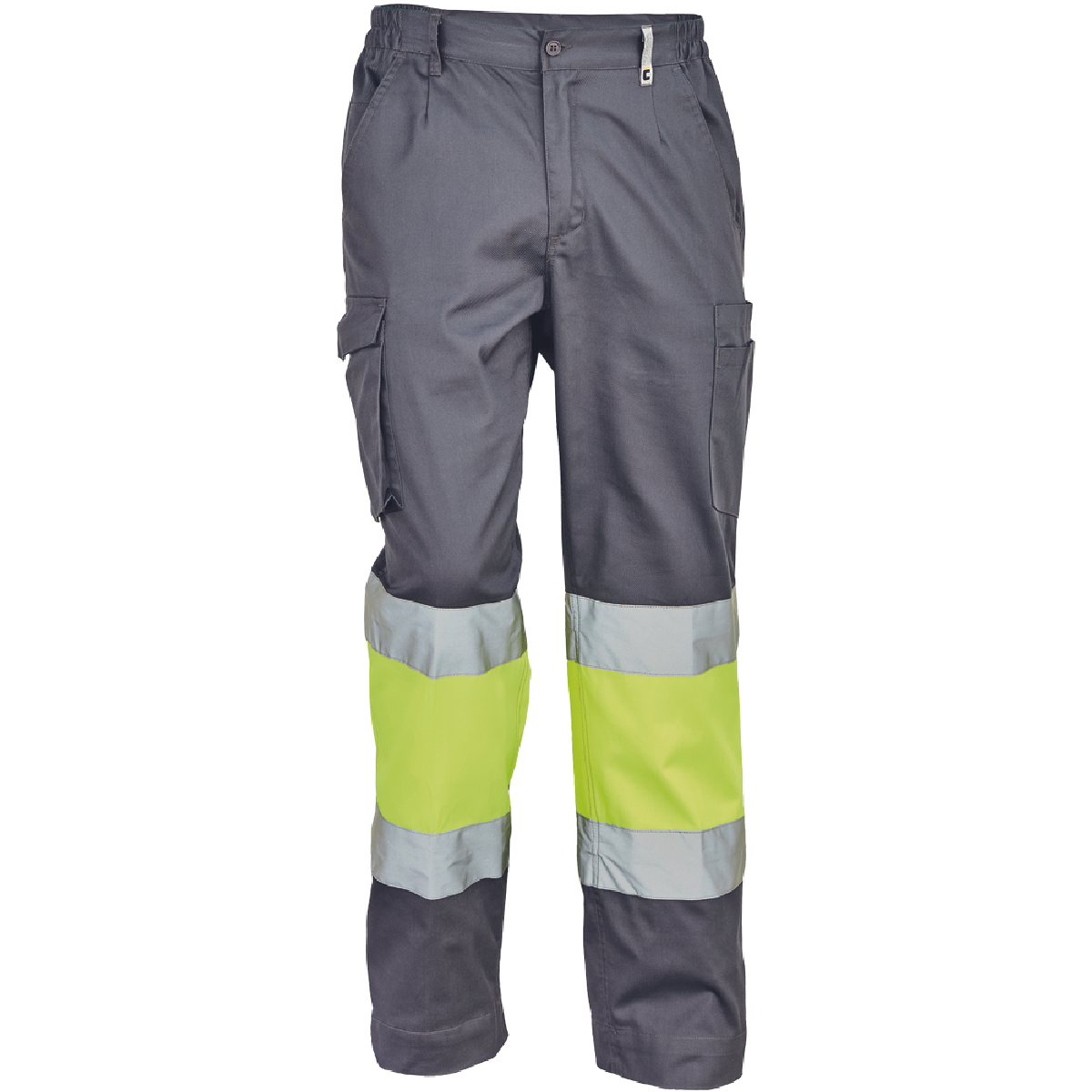 Το ανδρικό παντελόνι εργασίας Bilbao 3XL συνδυάζει την αντοχή με την υψηλή ορατότητα. Σε γκρι/κίτρινο χρωματικό συνδυασμό, διαθέτει ελαστική μέση, πολλαπλές τσέπες για εργαλεία και ρυθμιζόμενο μήκος ποδιού.